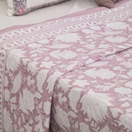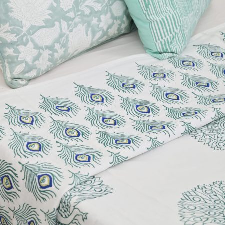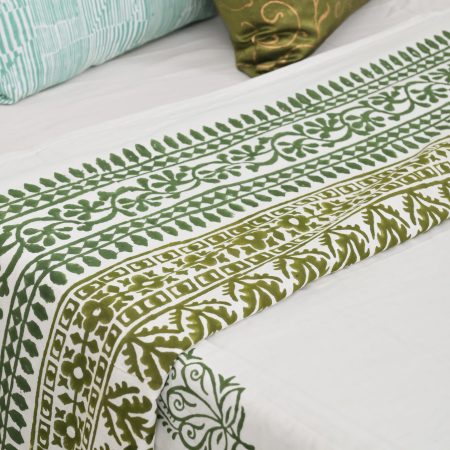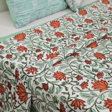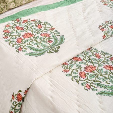 Green Carnation Block Printed Cotton Quilt