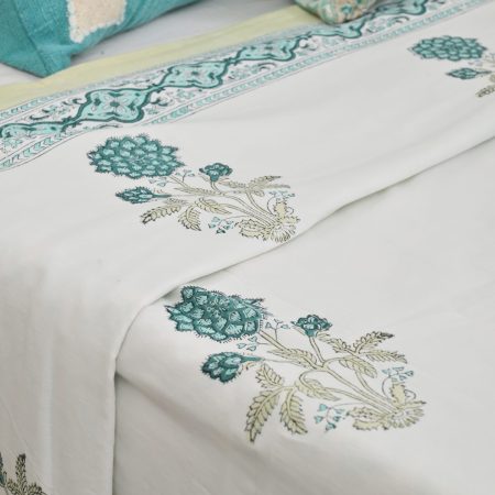 SUPER KING Rose Serenity Block Printed Bedsheets