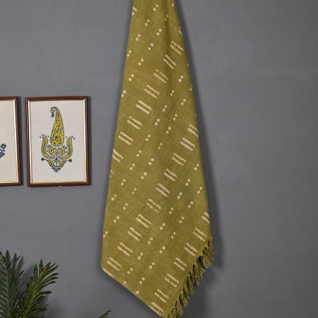 Green Pinch Block Printed Cotton Jute Throws