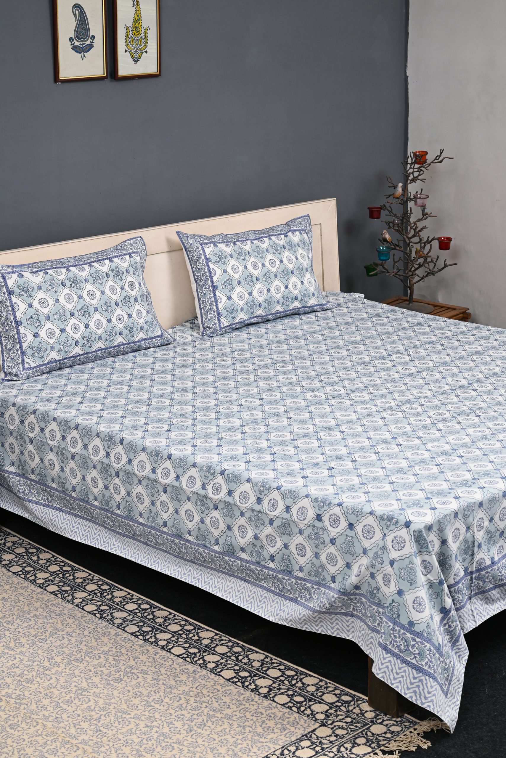 100% cotton Hand Block Printed Bedsheets with matching pillow covers. Enhancing the beauty of your body and soul with this designer product by ABEER .
