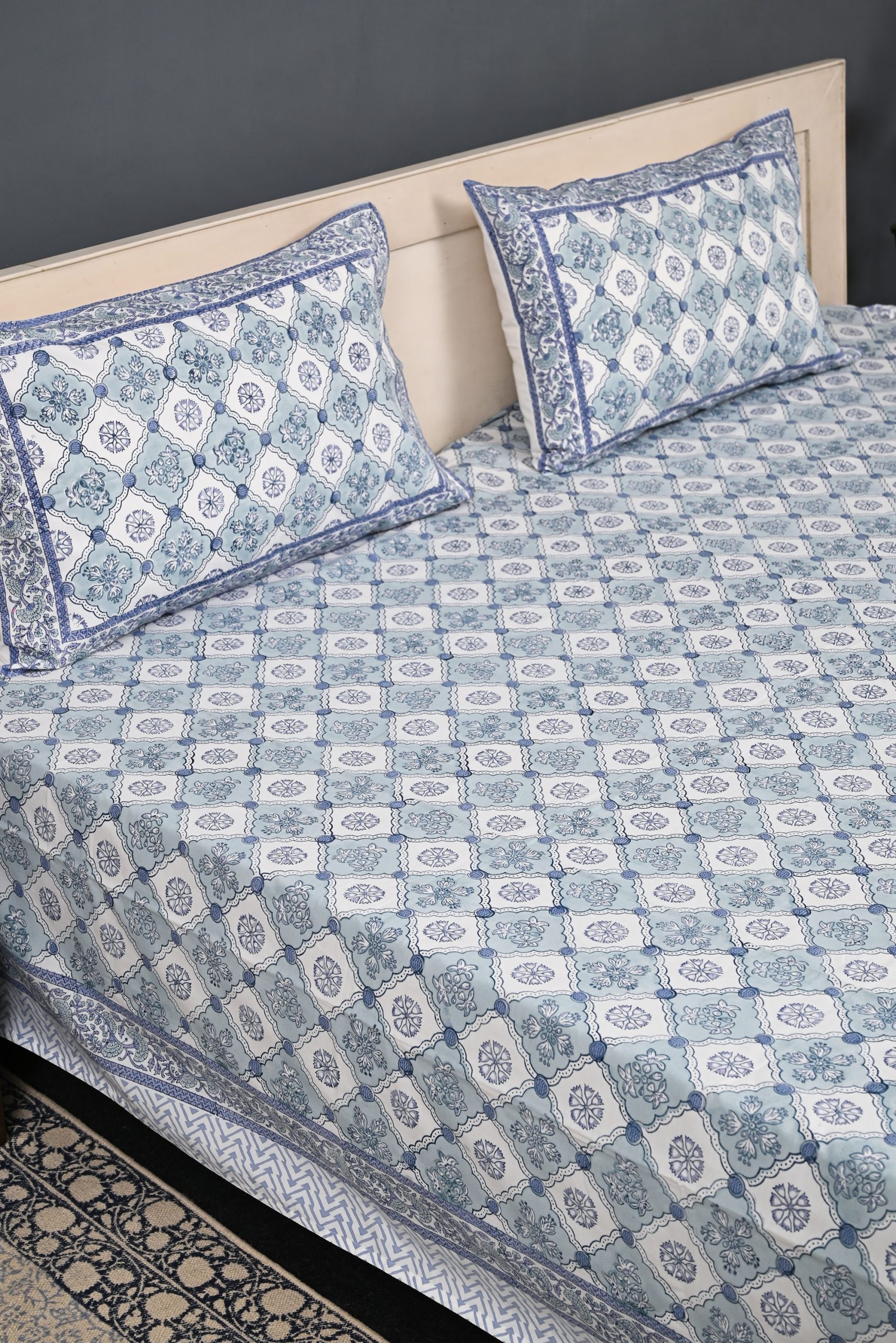 Blue Anise Block Printed Bedsheet