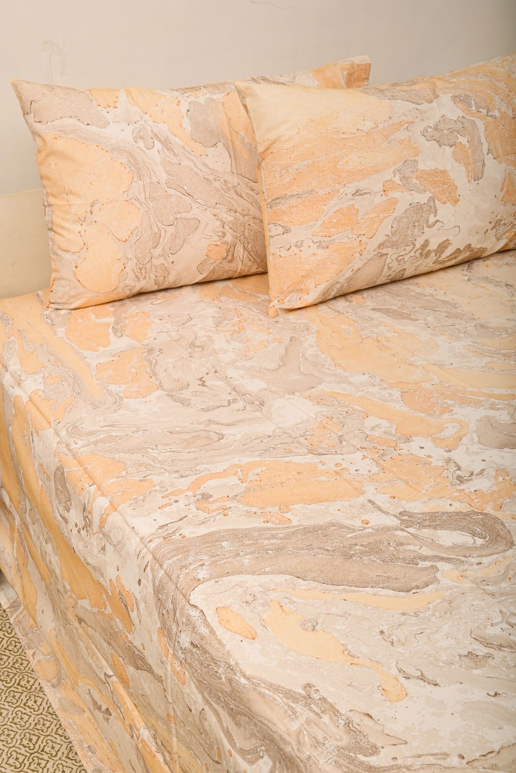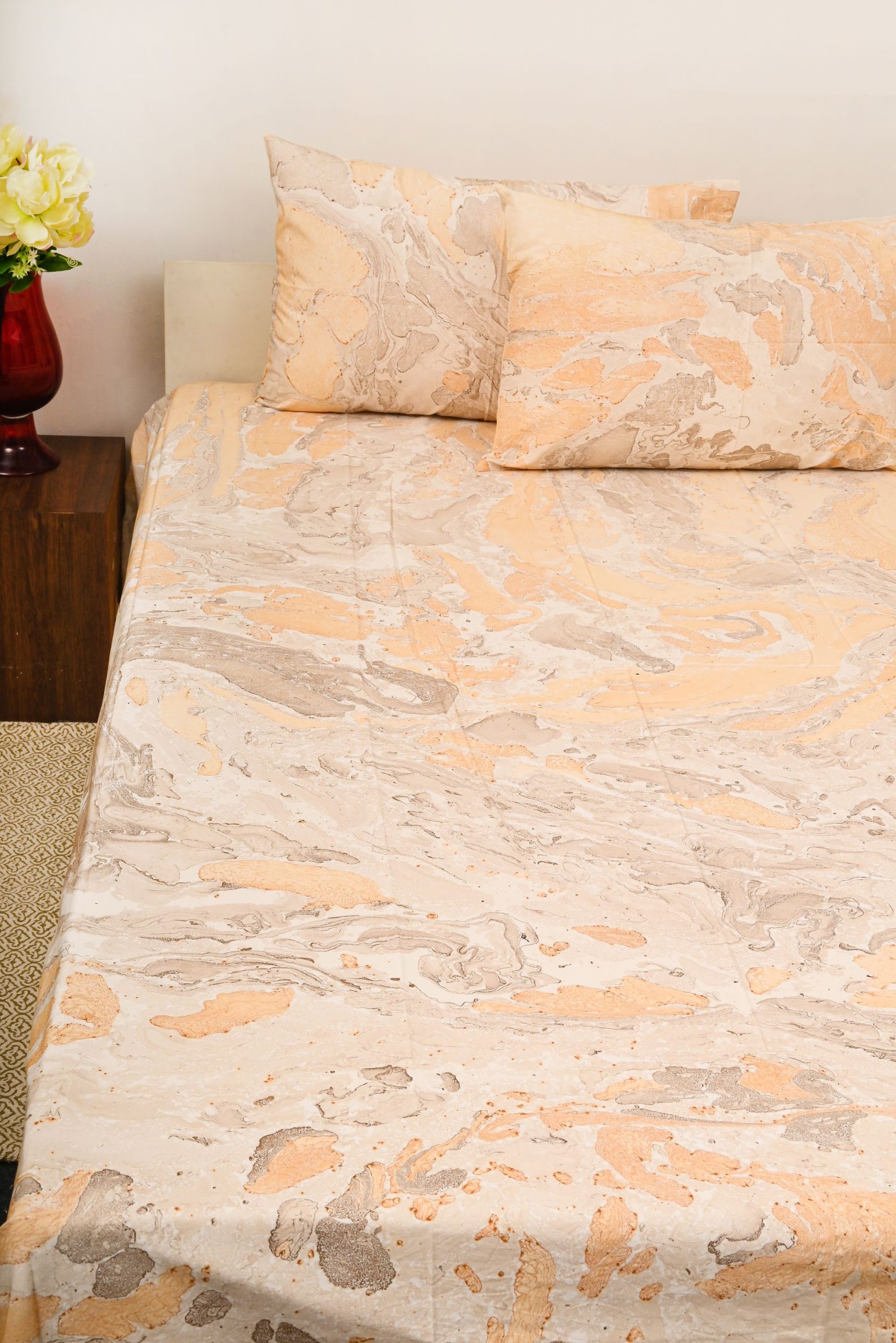 100% cotton Hand Block Printed Bedsheets with matching pillow covers. Enhancing the beauty of your body and soul with this designer product by ABEER .