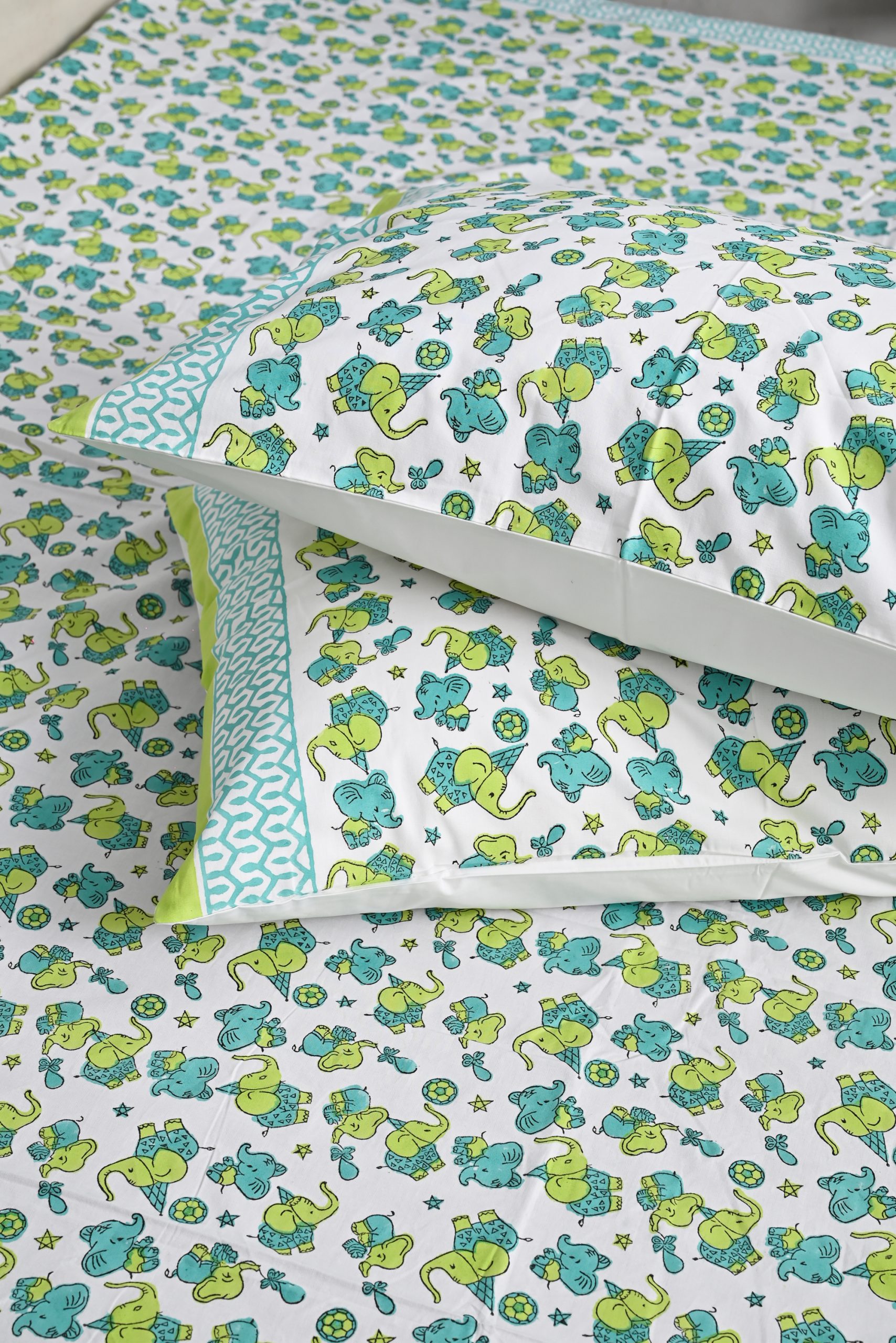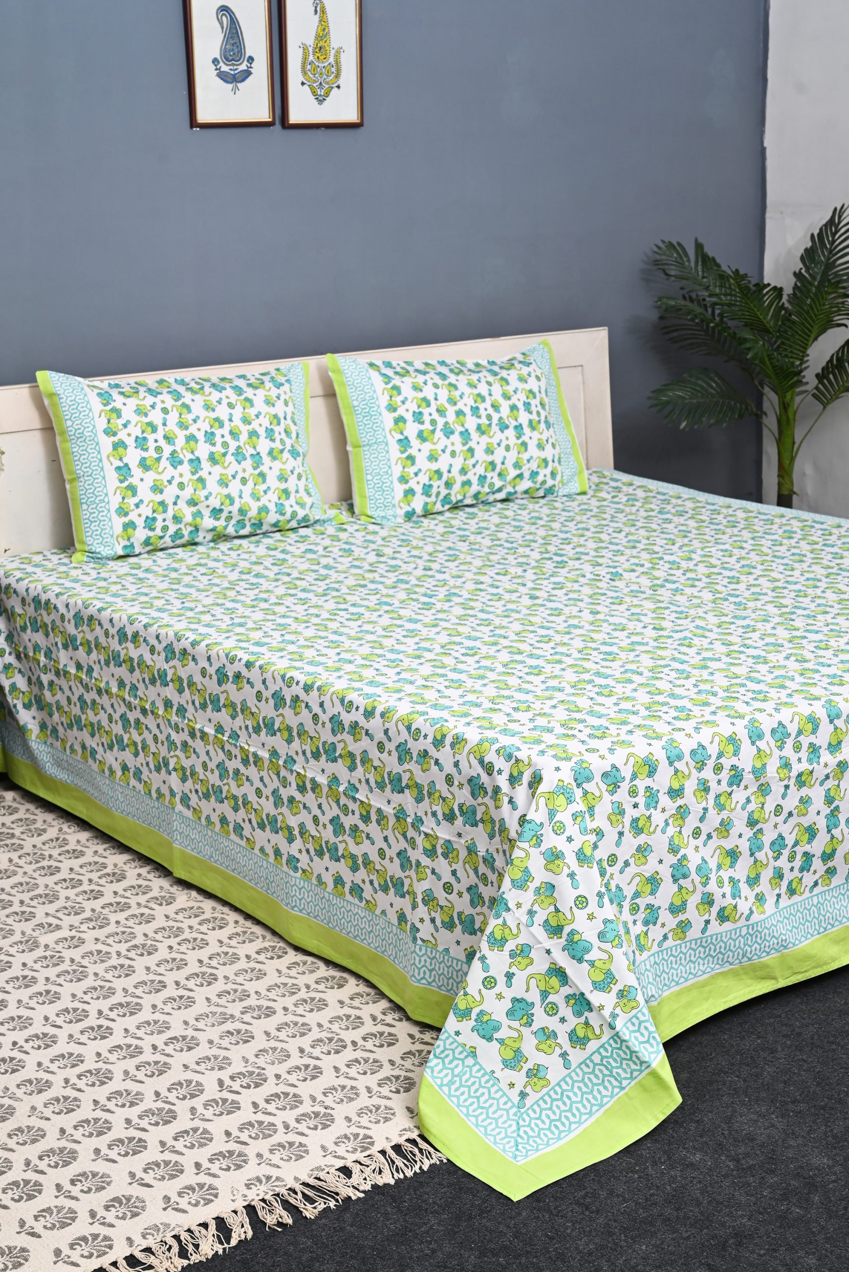 Green Lumpy Block Printed Bedsheet