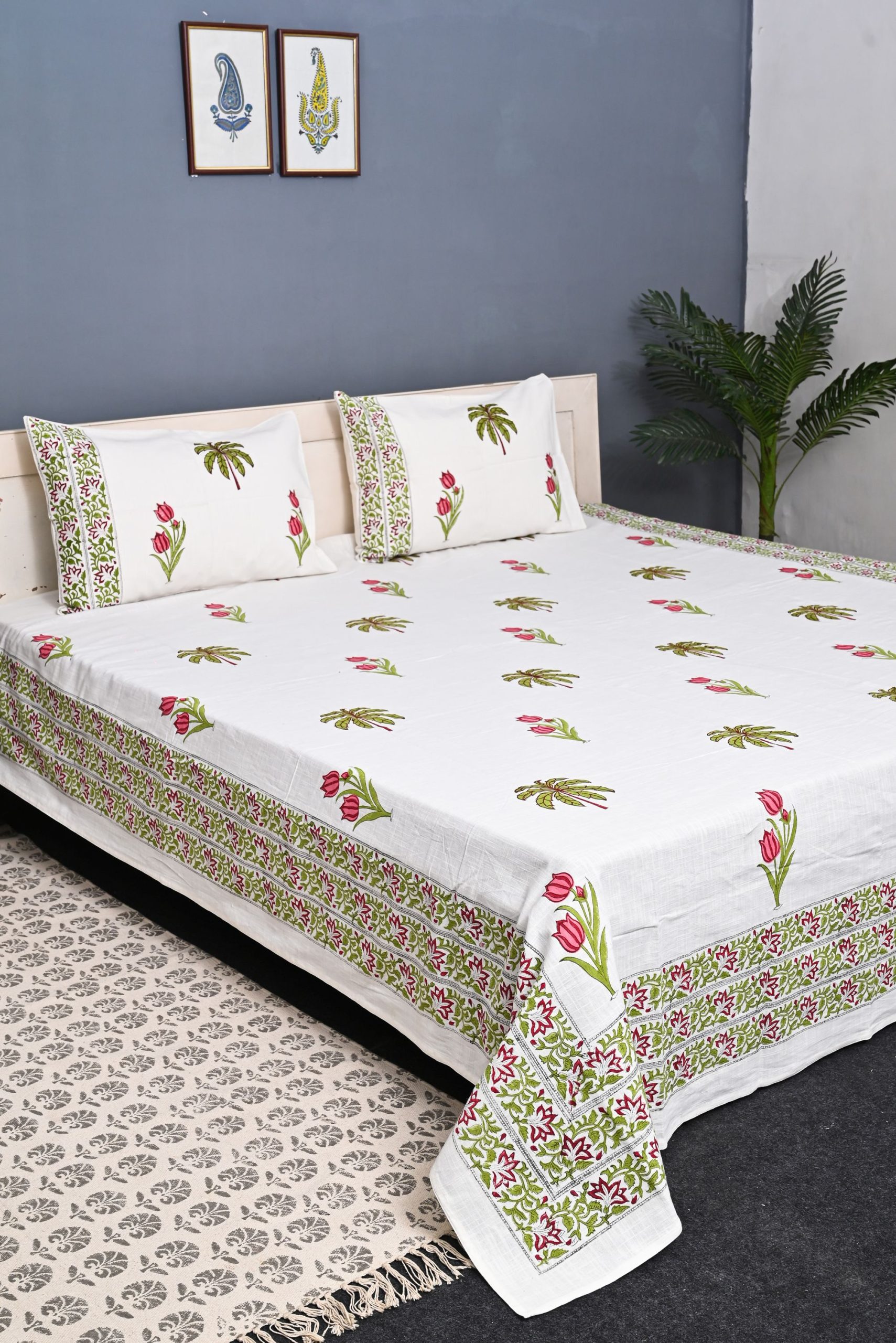 A 100% Cotton Hand Block Printed , designer bedcover to enhance the look of your bedroom ,