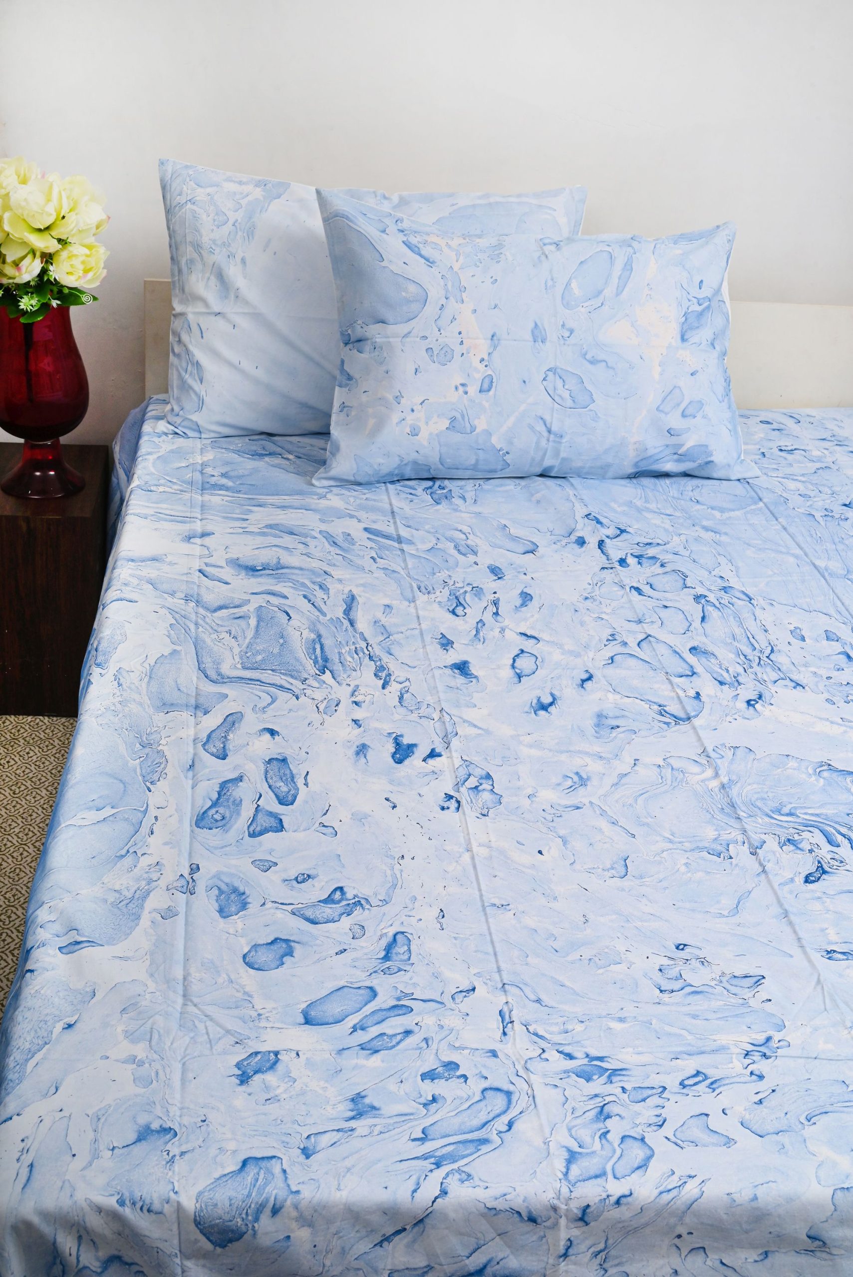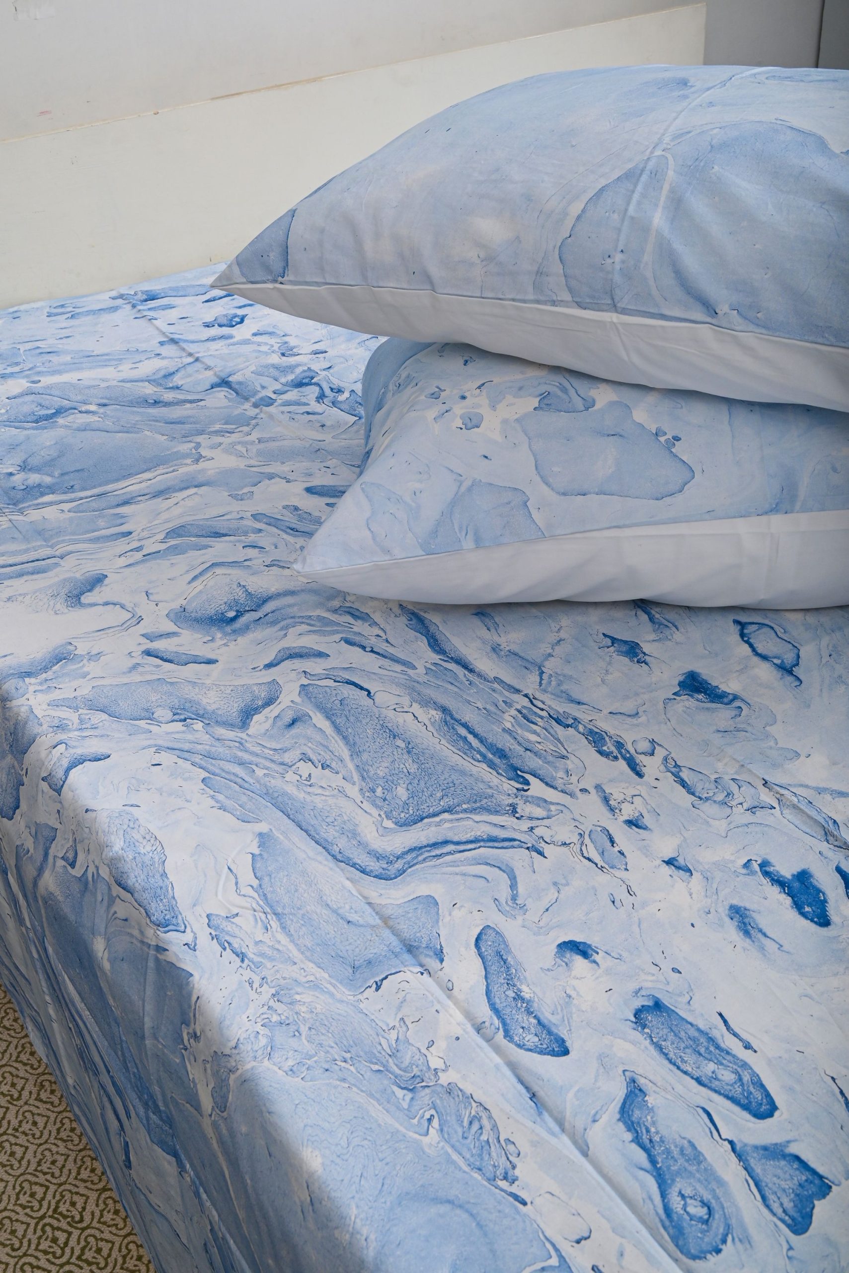 100% cotton Hand Marbellingck Printed Bedsheets with matching pillow covers. Enhancing the beauty of your body and soul with this designer product by ABEER .