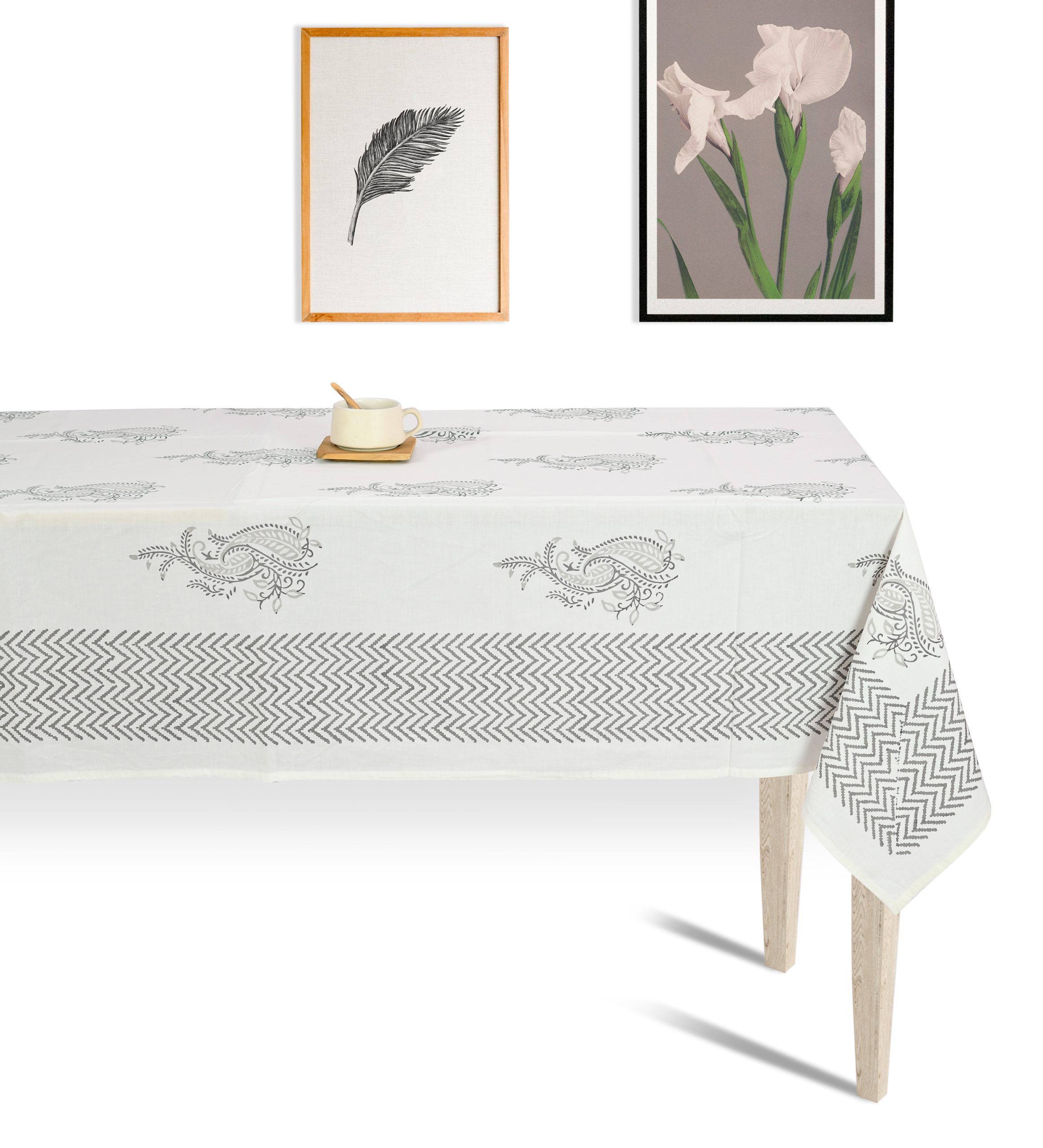 Silhouette Gray Block Printed Table Cover