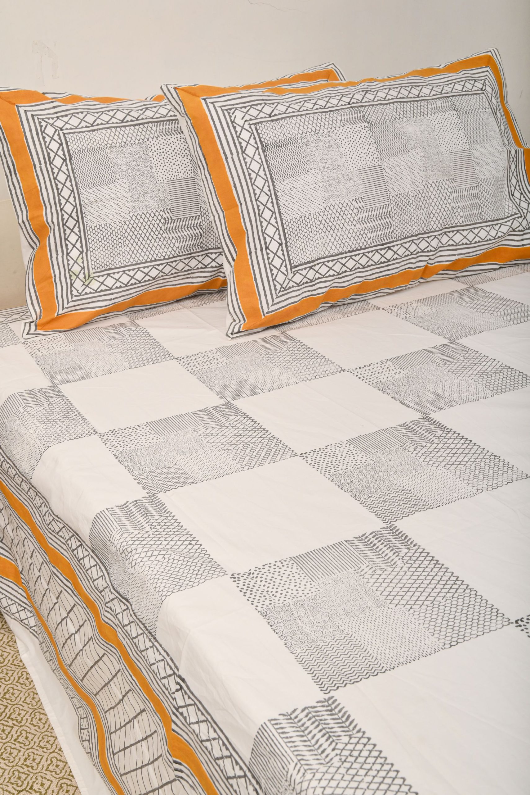 100% cotton Hand Block Printed Bedsheets with matching pillow covers. Enhancing the beauty of your body and soul with this designer product by ABEER .