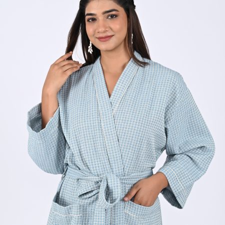 Alaskan Blue Block Printed Bathrobe